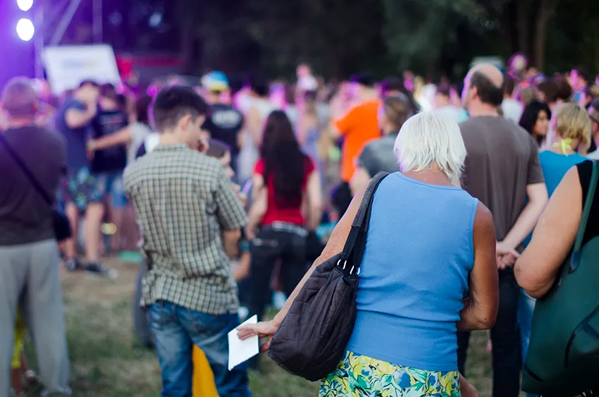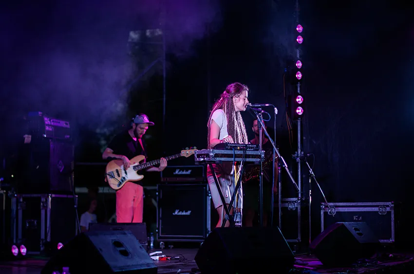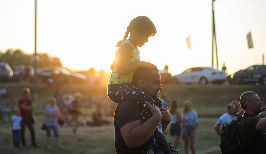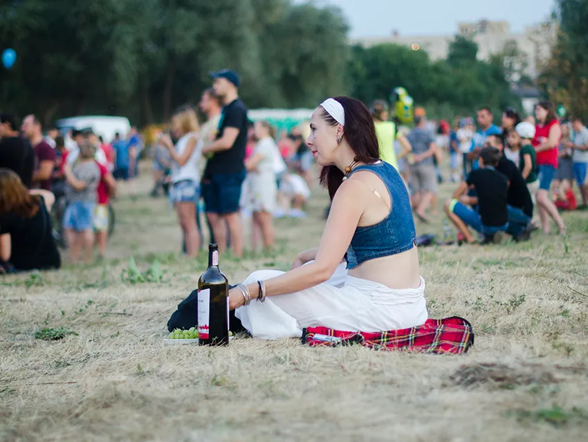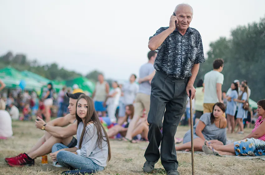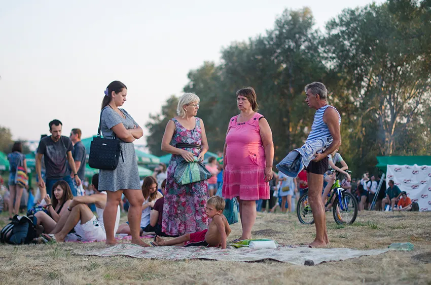 С другого берега со сцены доносится музыка. Рядом сидит семья.