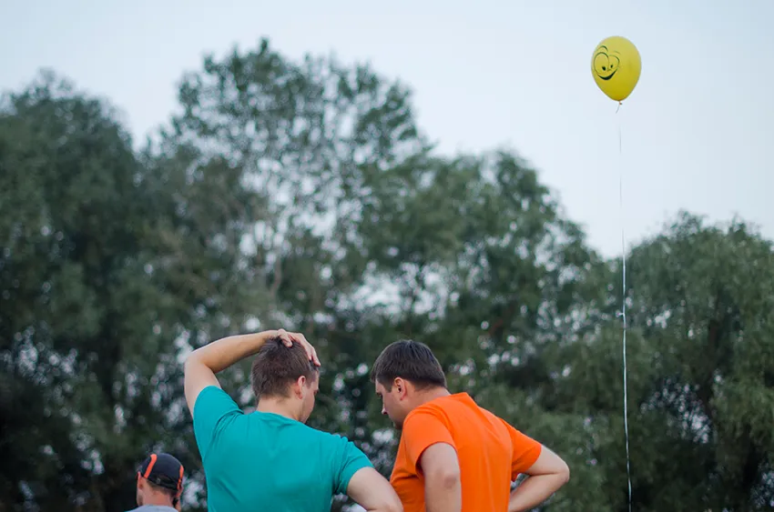 Женщины кричат, мужчины радуются. В паре метров от них лежит пара, которая, кажется, не слышит тоста за шумом ветра. Девушка в зеленом купальнике крутит на колене спиннер. Девушка в зеленом платье тащит ведро с речной водой.