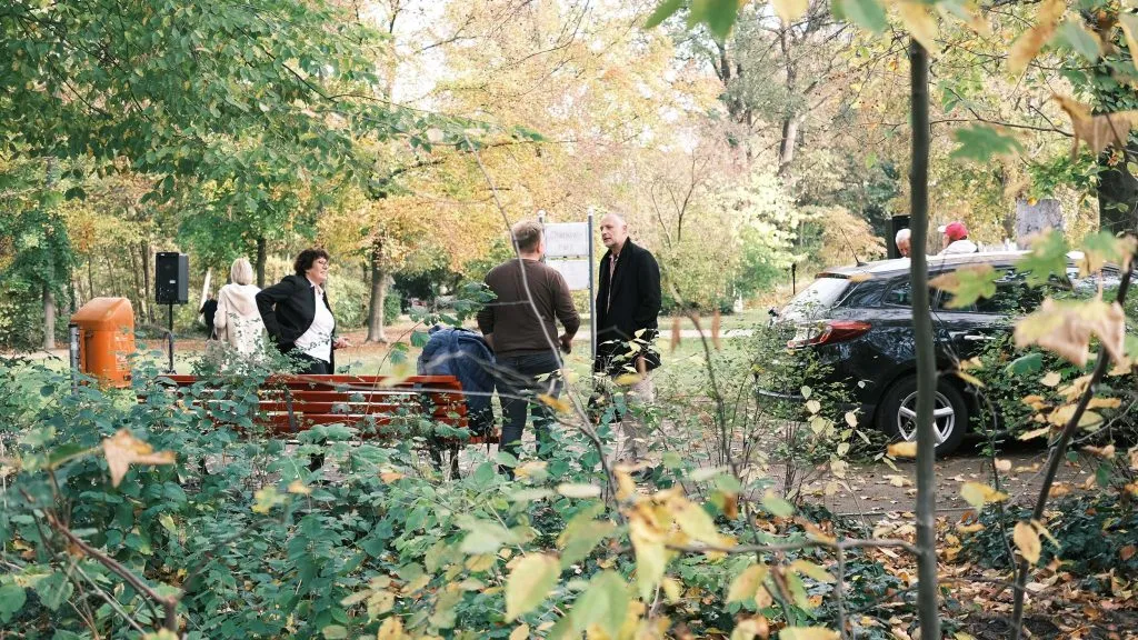 «Цей парк завжди був безіменним. Тому наш місцевий культурний центр Schwartzsche Villa — ось він тут навпроти — узгодив нову назву», — каже місцевий житель Йордан.