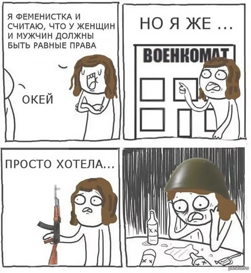 Зокрема, мем знизу виглядає абсурдним та зневажливим. І хоча створений він країною-сусідом, в Україні ставлення до жінок схоже.