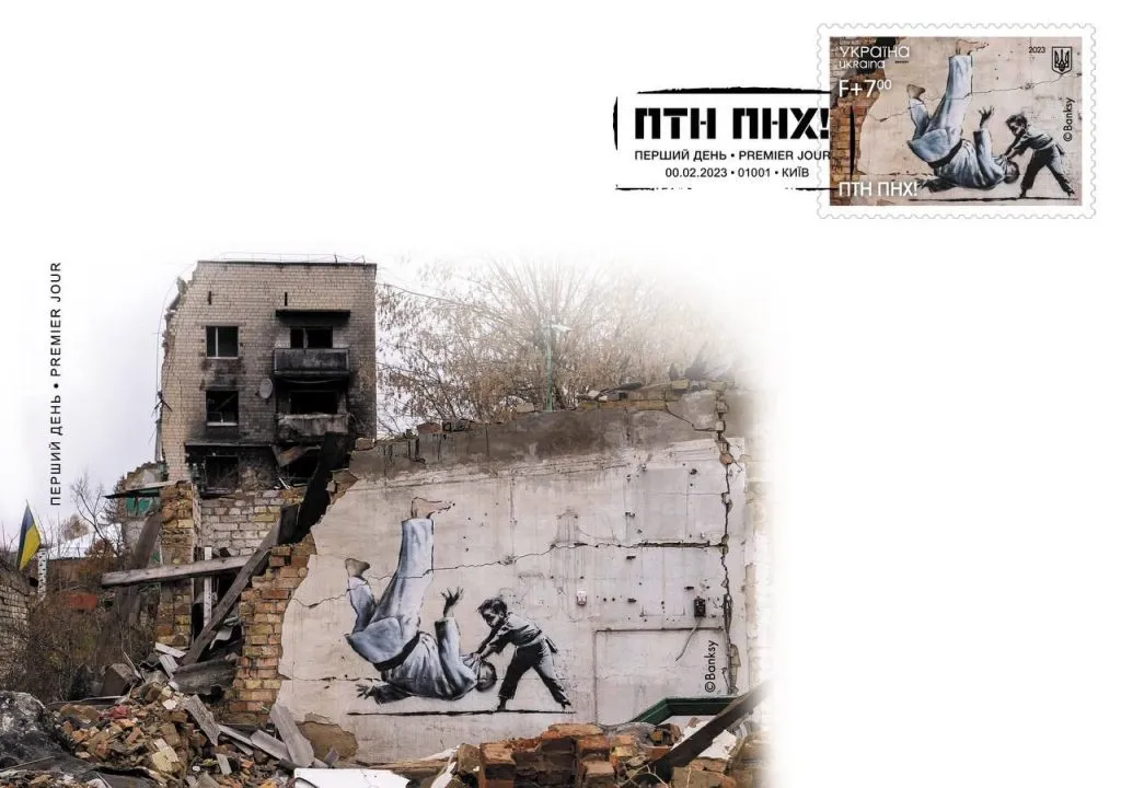 «ПТН ПНХ!» і графіті Бенксі. Укрпошта анонсувала нову марку до річниці повномасштабного вторгнення