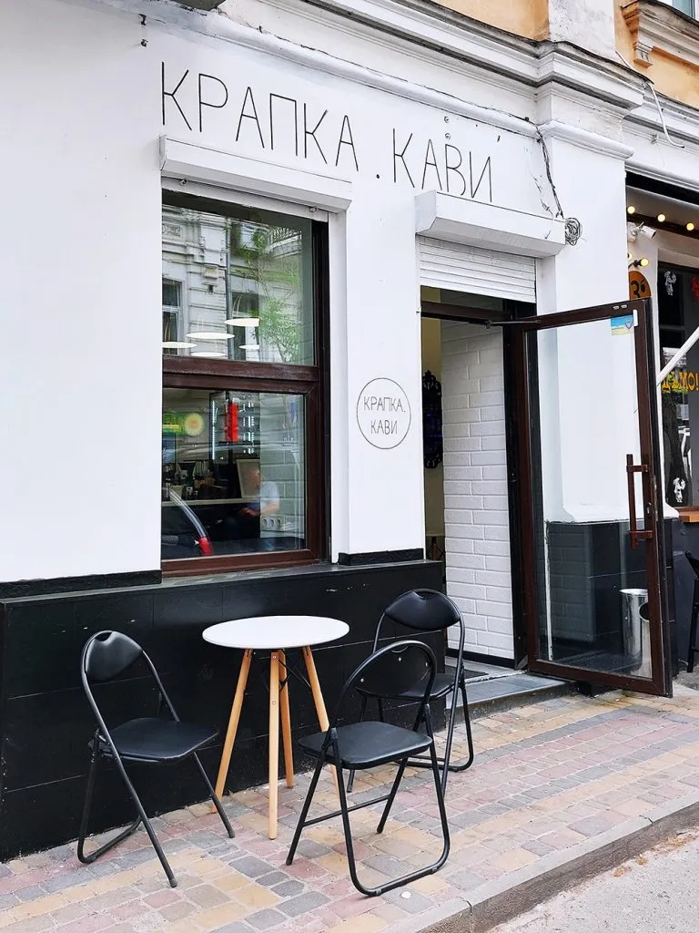 Харків’янин відкрив кав’ярню «Крапка.кави» в центрі Києва, неподалік від майдану Незалежності. Фішка закладу — заварювання кави через заморожену кулю та фірмове харківське печиво