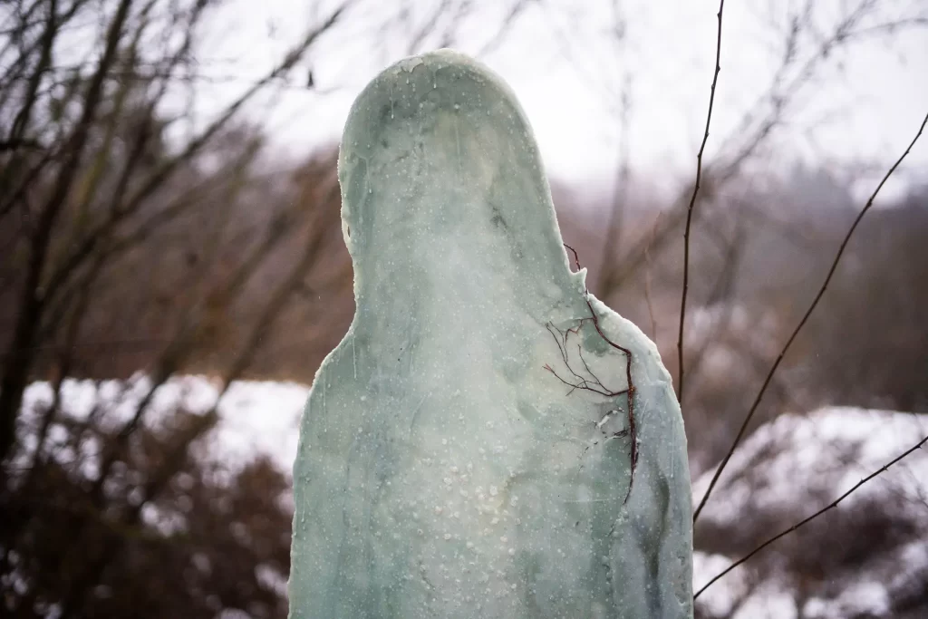 Наступний експонат — «Біль фантомного тіла» Марії Єрмішиної (Марія Марула). Це плаский сіруватий силует людської подоби. Він одиноко височить на харківських пагорбах, нагадуючи кам’яних баб, яких тисячоліття тому на цих землях ставили кочівники.