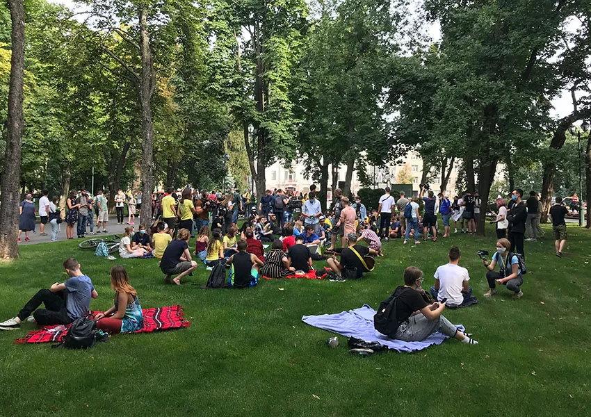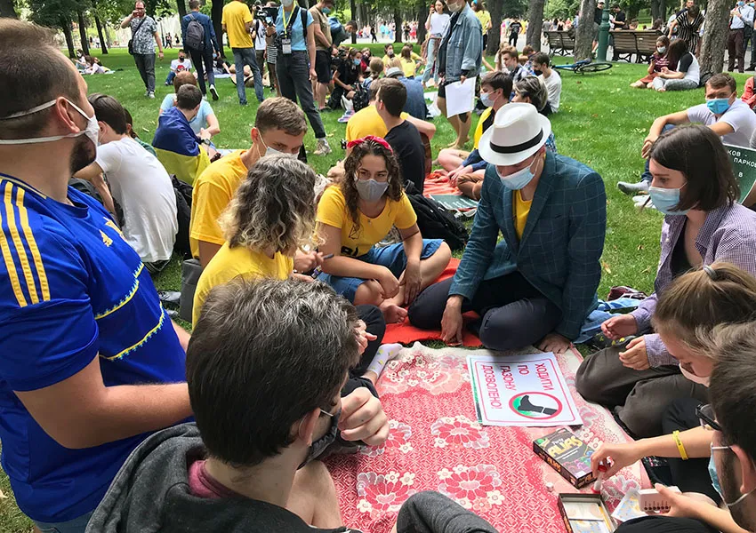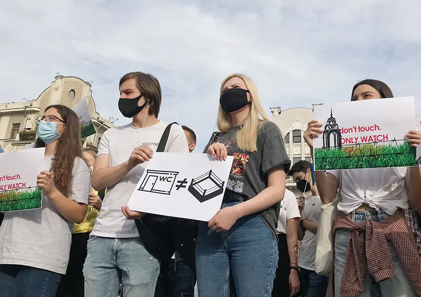 Після майже півгодинного «сидячого» протесту із перебіжками з газону на газон або непорушним сидінням під поливними системами акція добігає кінця. Втім, всі її учасники та учасниці солідарні у тому, що вона була переможною. Адже цією акцією вдалося привернути увагу містян до дуже нагальної проблеми. Протест активно висвітлювали медіа, а сам факт мирного сидіння на траві показав, що городяни здатні боротися за власний простір та свободу.