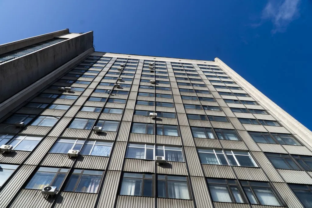 Забудова тут — в основному, післявоєнні «сталінки» або «хрущовки», або ось такі панельки як і на Салтівці, і багато де. Новобудов мало. А ось і НДІ, інститут машинобудування. Зараз фактично не працює, через війну остаточно заглух.