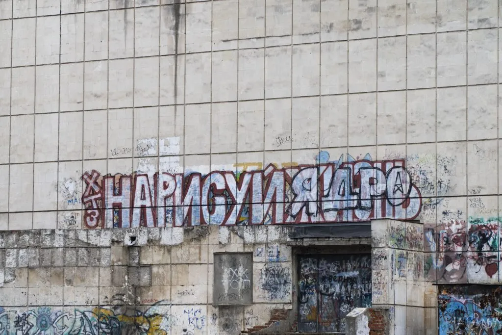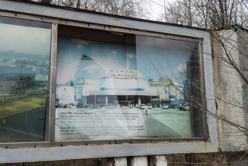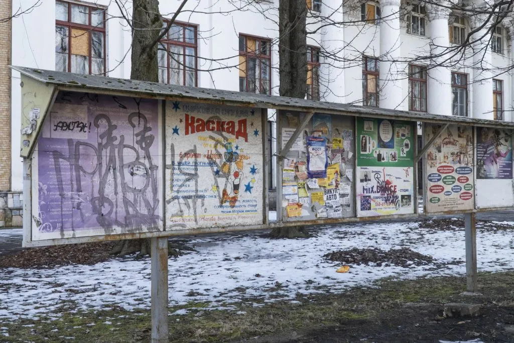 [Ми підходимо до пафосної будівлі ДК. Вона теж виглядає закинутою, біля неї — старезна дошка оголошень. Я вивчаю оголошення про відкриття секції брейк-дансу (це який рік? 2010?), і раптом натикаюсь на єдине свіже оголошення – про відкриття нового супермаркету наступного дня. Таке відчуття, що цей єдиний чужинець швидко зникне, не приживеться тут…]