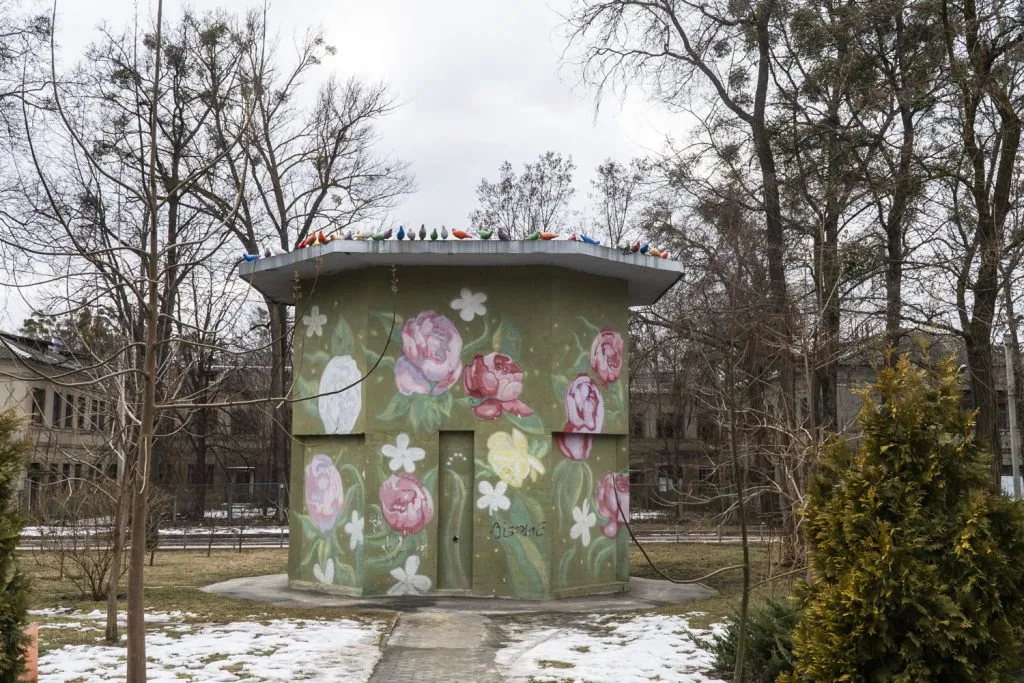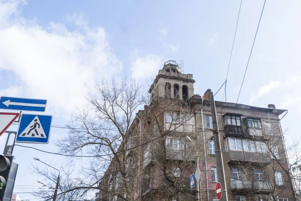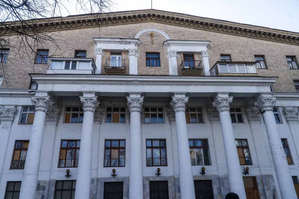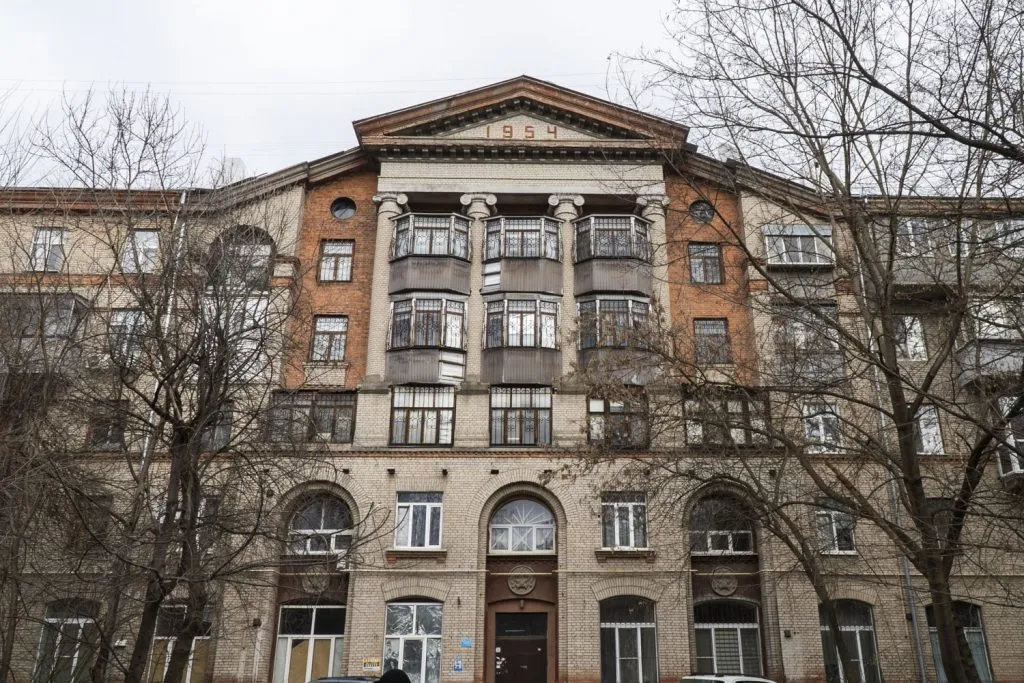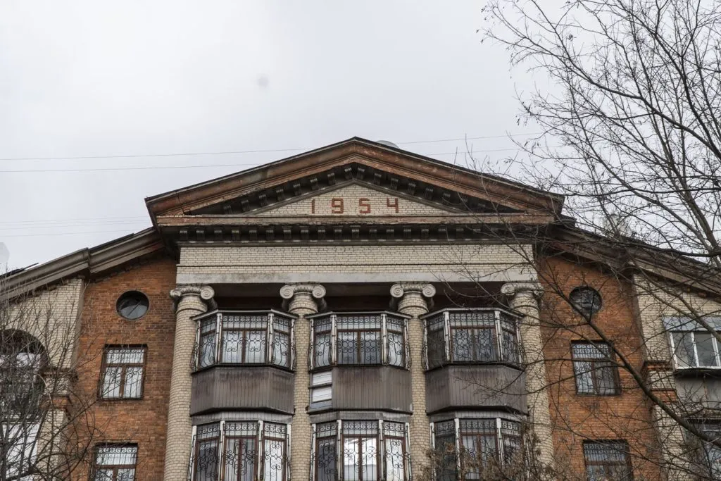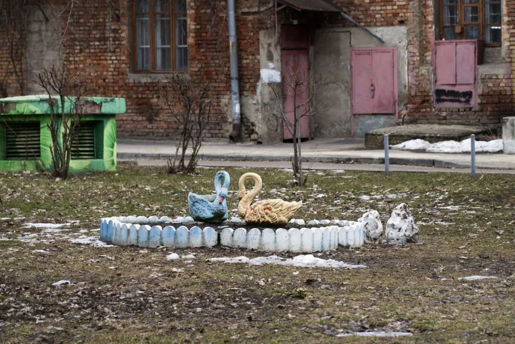 Навколо тут забудова — гуртожитки, шість поверхів, якраз американські проєкти, ще з 20-30-х років. Між ними була спільна заводська їдальня. Тут все дуже постраждало в 2022 році — РСЗО, «Гради», все сюди долітало. А чотириповерхова будова — вже післявоєнна. Ці споруди зводили полонені німці. Тож частина тут американська, частина — німецька. Тут поряд дитячий садочок, але він не вижив — закрився у 90-ті, зараз будівля здається в оренду.