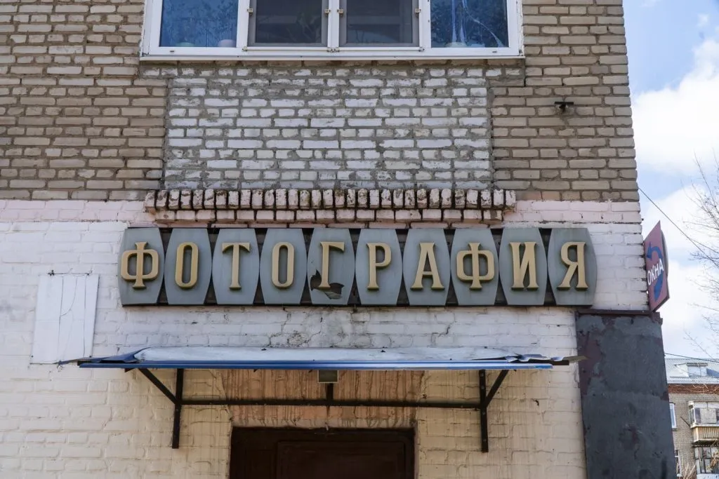 [«А чого це ви тут фотографуєте?» — знов цікавиться місцевий, дещо агресивний чоловік середніх років. Я намагаюсь щось пояснити за естетику вивісок, але Кирило вже захоплює незнайомця ностальгією: «Я тут фотографії друкував! Усе дитинство!». «І я, і я!» — раптом посміхається співрозмовник, і напруга між нами зникає]