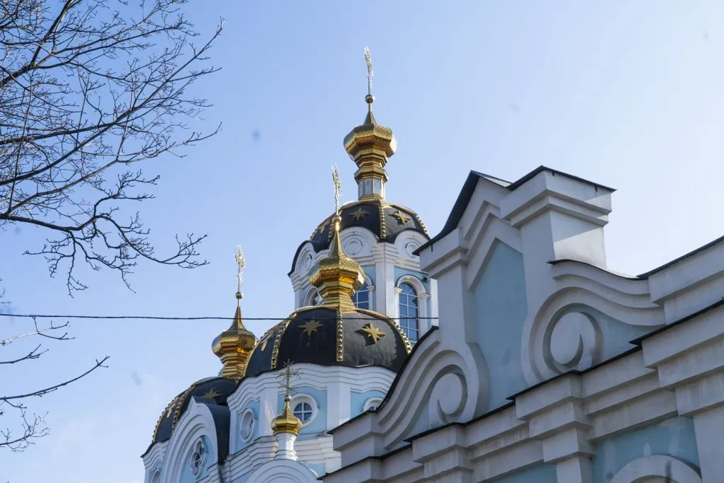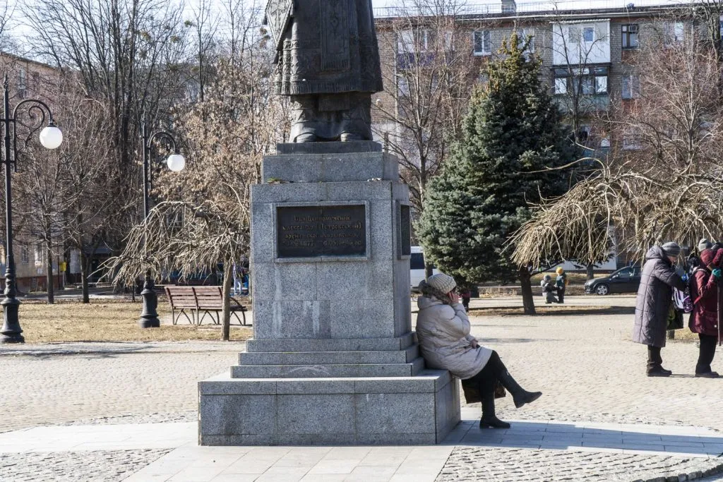 Ми оглядаємо храм (і знову московський патріархат), спостерігаємо за чергою за гуманітаркою. В черзі сваряться, чути лайку. Їх ми не фотографуємо, бо не варто наражатись на конфлікт. Далі підходимо до Палацу юнацької та дитячої творчості.