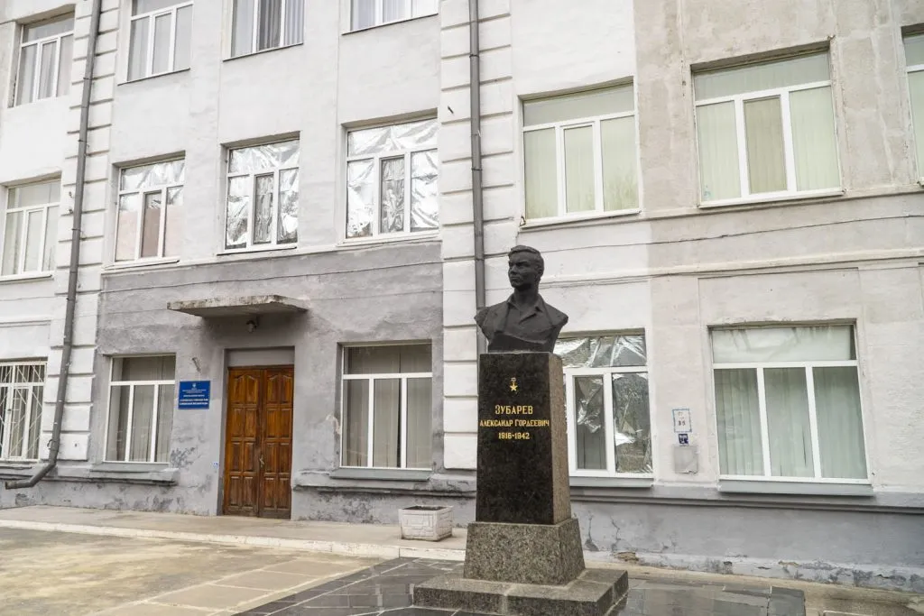 До речі, вулиця, якою ми йдемо, носить ім’я генерала Момота, полковника прикордонної служби, який загинув під Зеленопіллям, захищаючи кордон ще наприкінці червня 2014 року. Посмертно він отримав звання генерала. На школі — меморіальна табличка. Проте сама школа носить ім’я Зубарєва, голови Харківського комсомольського підпілля в часи Другої світової. Тут і пам’ятник залишився. У нас тут багато такого лишилось, радянського.