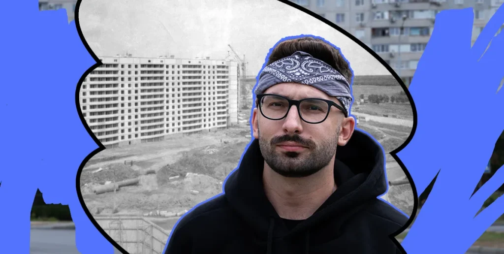 Ми зараз потроху спускатимемося в яр, до лісу. Будувалось це все як типовий радянський спальник, де ти тільки спав. В тебе тут не було ані кінотеатру, ані великого магазину.