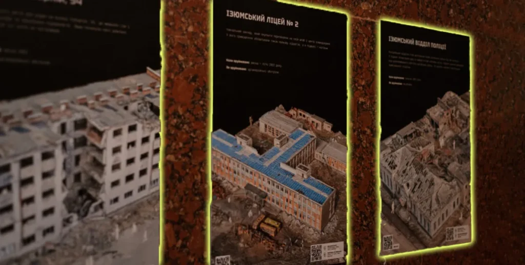 На виставці представлені 3D-моделі зруйнованих об’єктів, місць незаконного утримання людей та масових поховань. Також важливу роль у проєкті зіграли історії жителів Харківщини, які були зібрані за допомогою Головного управління Національної поліції в Харківській області та платформи памʼяті «Меморіал».