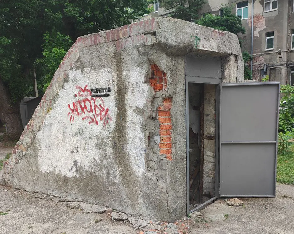 - Укриття у будинках, зруйнованих ще на початку повномасштабного вторгнення (наприклад, будинок на вулиці Наталії Ужвій);