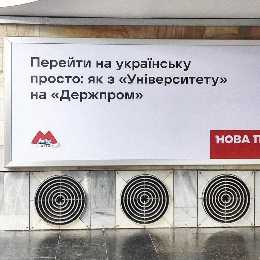 Банери на станції «Південний вокзал» запрошують до незламного Харкова, на «Науковій» — виголошують, що «Ми всі тут залізобетонні», а на виході з «Університету» нагадують, що перейти на українську так само просто, як і на станцію «Держпром».