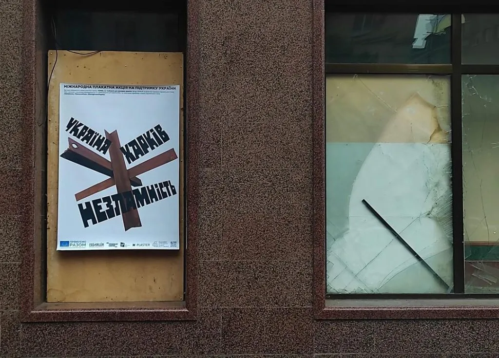 Харків’яни також можуть розмістити один з плакатів на будівлях, що постраждали від російських обстрілів. Для цього потрібно: