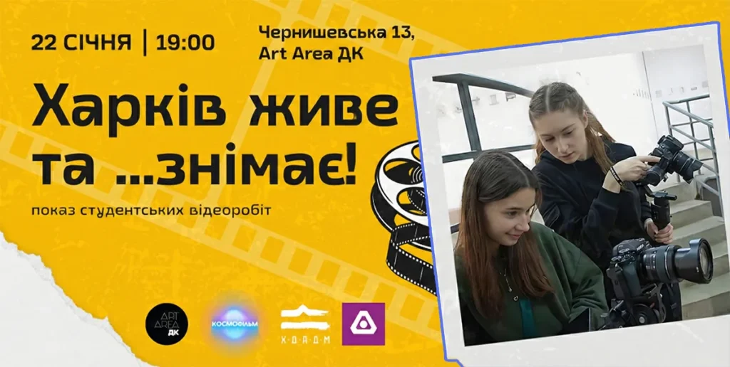Це подія для тих, хто любить кіно, знімає сам, шукає однодумців для колаборацій або просто хоче підтримати своїх у Art Area ДК», — розповідають організатори.