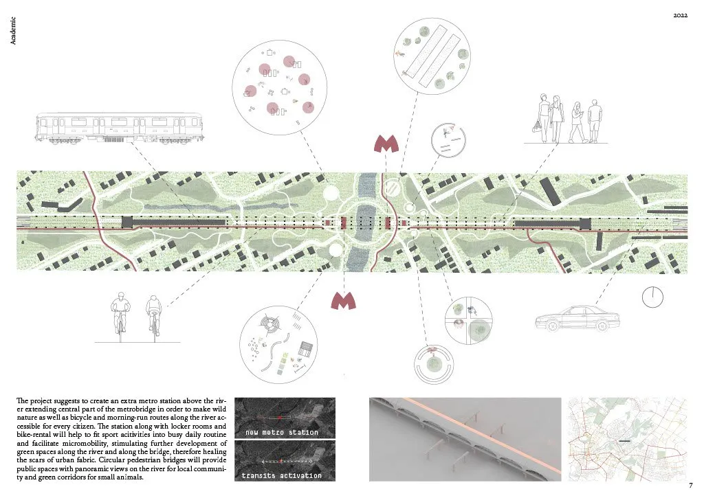 Випускниця Харківської школи архітектури Аліса Александрова представила на європейський конкурс Young Talent Architecture Award свій дипломний проєкт під назвою Station to Station. Вона пропонує перетворити метроміст Салтівської лінії метро на доступний та відкритий простір над річкою Харків.