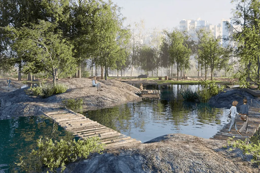 Перемогу у номінації «Містобудування» архітекторка Ольга Клейтман у коментарі «Люк» називає найважливішою і дуже показовою у питанні комунікації з місцевою владою. Так, у 2021 році SBM Studio перемогла на тендері щодо будівництва набережної Дніпра в Черкасах. Архітекторка розповіла, що спочатку вони розробили дві концепції набережної, однак потім дізнались, що поруч планувалась забудова високоповерхівками. Для цього хотіли замити острів, що знаходиться навпроти берега.
