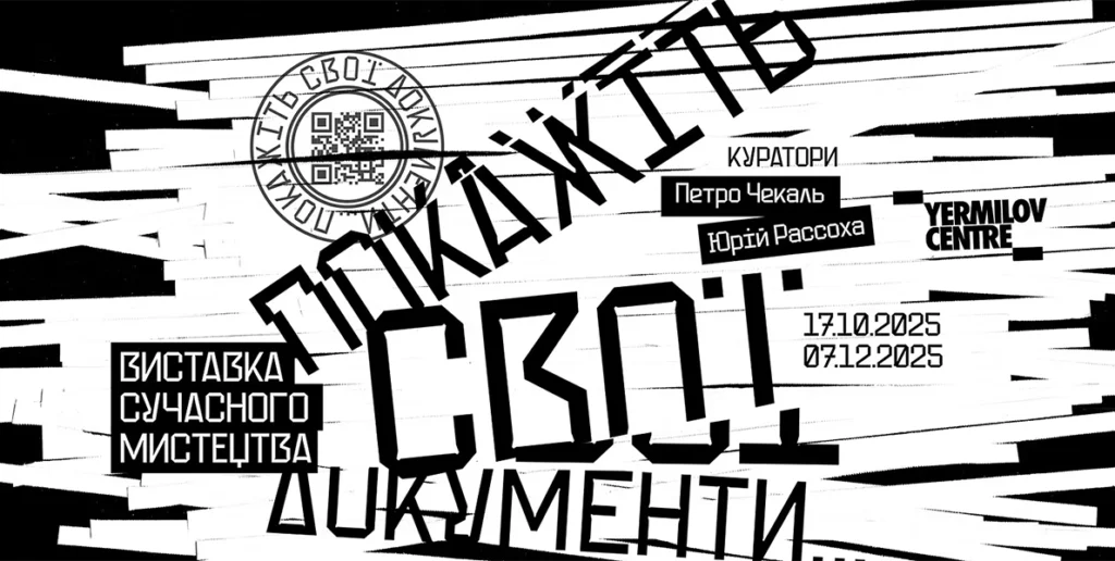 17 жовтня у Центрі сучасного мистецтва «ЄрміловЦентр» відкриється перший виставковий проєкт кураторів Петра Чекаля та Юрія Рассохи під назвою «Покажіть свої документи…».