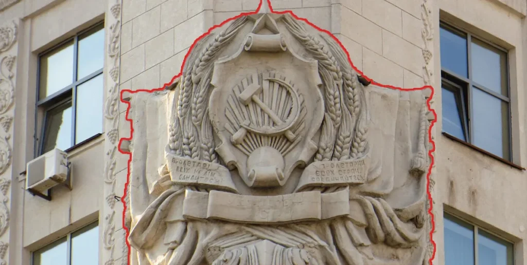 «Харківською міською радою виконано Проект об’єкту будівництва “Ремонт (реставраційний) з усунення символіки тоталітарних режимів на фасадах будівлі Харківської міської ради за адресою: майдан Конституції, 7 в м. Харків (реставрація)”, який передбачає демонтаж символіки комуністичного тоталітарного режиму. Але роботи не розпочаті, через те що внаслідок військової агресії російської федерації, місто Харків знаходиться під постійними обстрілами, що призводить до загибелі мирного населення, руйнування/знищення майна, — каже Ігор Качало.