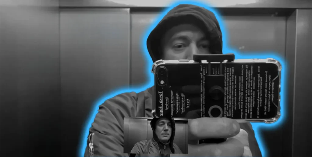 «Відеоінсталяція була розроблена, аби запропонувати досвід перегляду відео одразу з двох камер смартфону. Один цикл триває 55 хвилин. Основним елементом трансляції є відеодиптих — накладення маленького монітора (відео «селфі») на велику проєкцію (відео «точка зору»), що інсценує співвідношення «портрету» і «пейзажу», активно вписуючи людину в середовище, до якого вона належить. Це подвійне звернення до погляду та уваги глядача створює імерсивний досвід перегляду», — пише про фільм Львівський муніципальний мистецький центр.