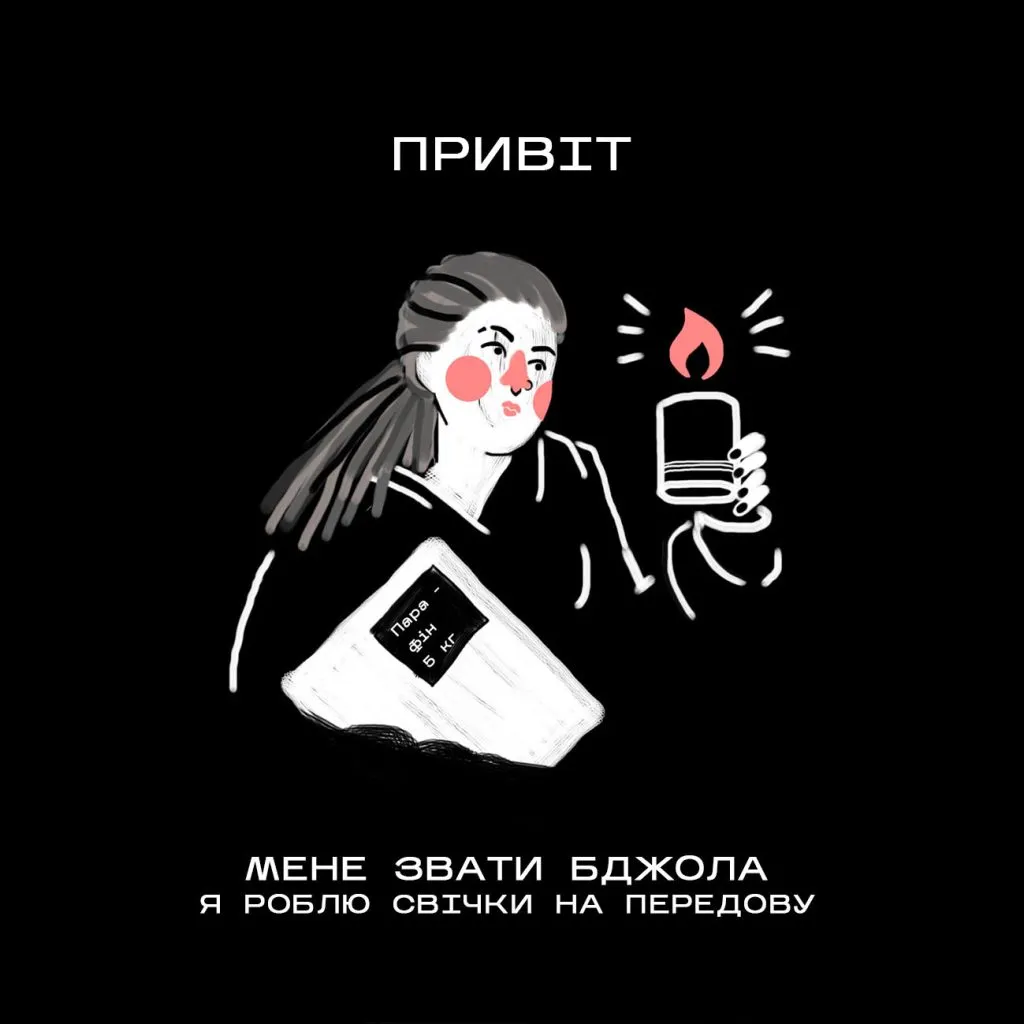 «В останній блекаут я зробила ілюстрований квіз “Яка ти свічка”, — пояснює Лорі. — Та згадала, що в мене є подруга Настя Бджола, яка робить окопні свічки. І запропонувала візуалізувати її працю. Настя була в захваті від тієї ініціативи і ось у нас є короткий ілюстрований сторітелінг про процес виготовлення окопних свічок».