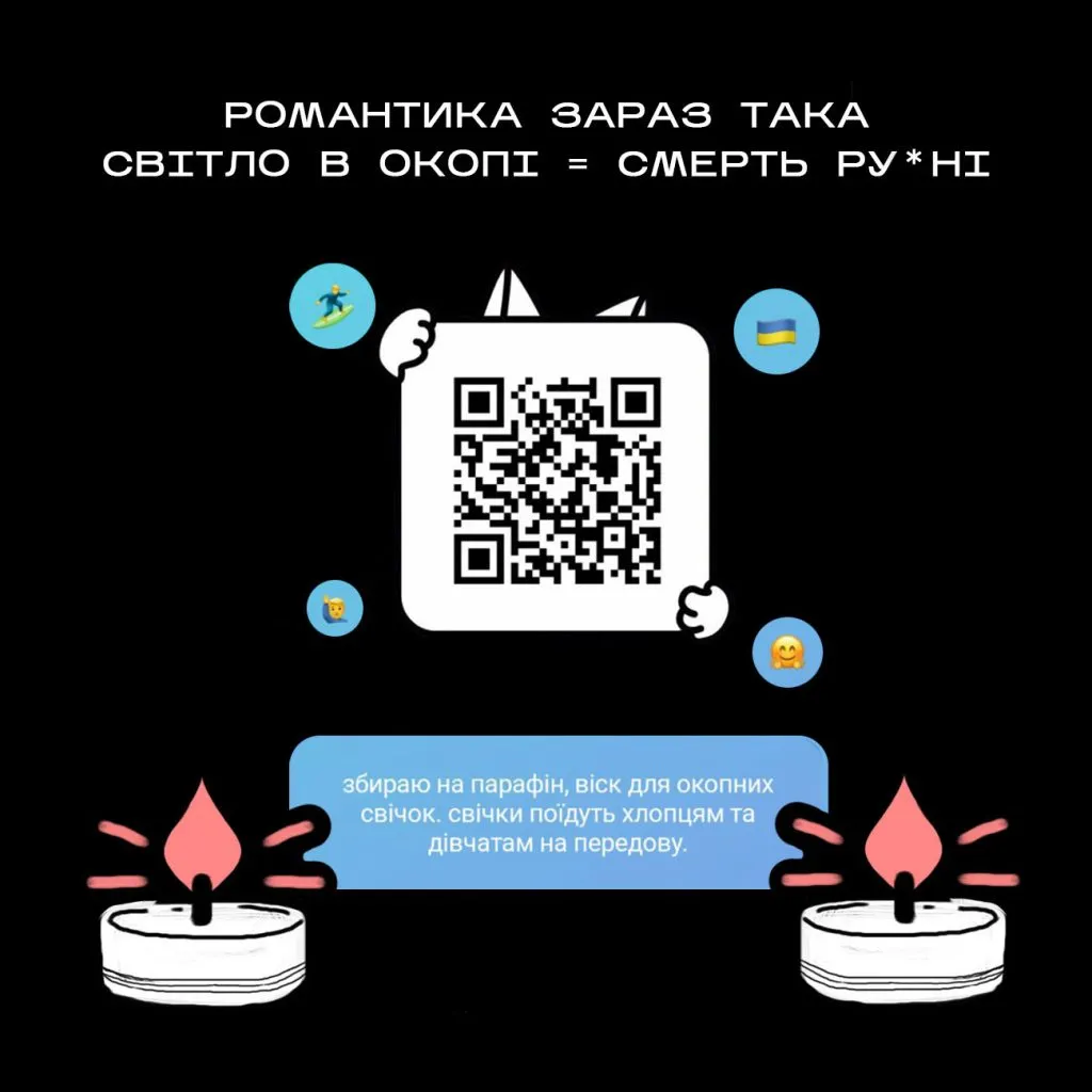 Це допомога, котру я можу робити з користю для себе та трьохкратною користю для наших героїв та геройок. Це користь, котру я можу дарувати для нашої перемоги. До того ж, романтика зараз така, світло в окопі = смерть ру*ні».
