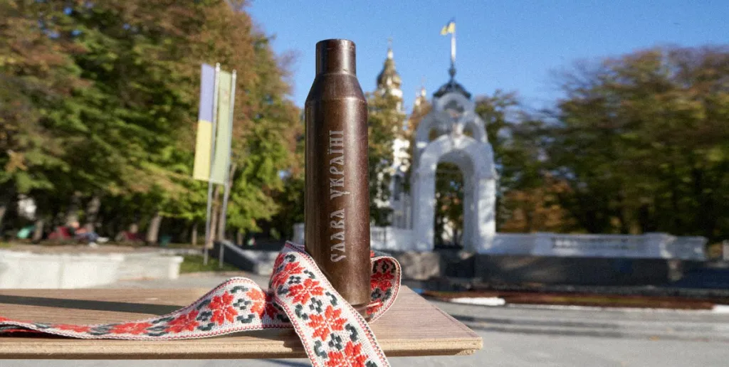 — Була гільза, вона вже відстріляна. Ми використовуємо її як основу для виготовлення, наприклад, ваз із гравіровкою, келихів для алкоголю. Вони складаються із чорного металу гільзи, до якого припаяна нержавійка. Зараз у нас у розробці є вазочки, які робитимуться з бобіни «Мухи». Можна заливати водичку і ставити букет.