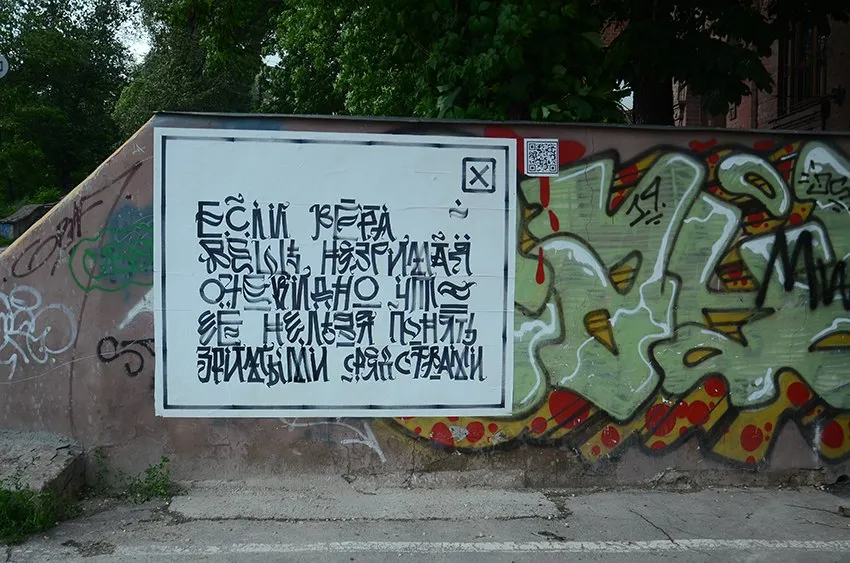 Однажды я сам клеил постер в Бердянске на косе, останавливается чувак и говорит: «Это что ты, закладки тут рекламируешь?». Я ему говорю: «Помоги лучше, сейчас сам все увидишь». В тот день был сильный ветер, мне самому сложно было справиться с большим полотном. И чувак мне реально помог наклеить постер. А потом я прочел ему вслух, что там написано, и он понял, что это не реклама закладок.