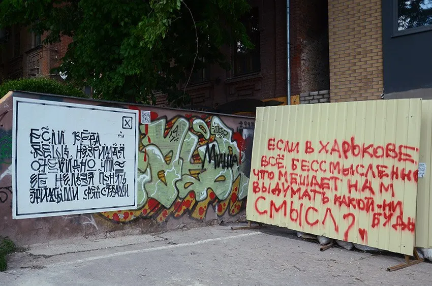 В итоге Nameless XXII остались в Харькове на пару дней, чтобы доделать работу, а в свободное время гуляли и оставляли на заборах и стенах плакаты с посланиями. Мы поговорили с художниками о сроке жизни стрит-арта, глобальном «зачем» и, конечно же, о Харькове.