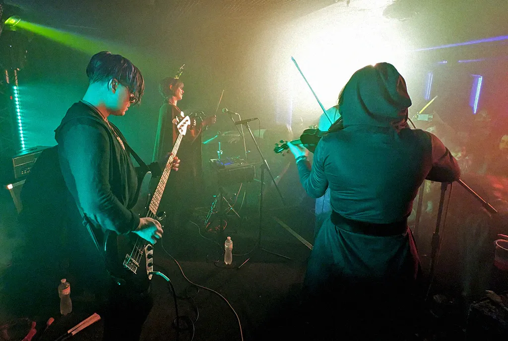 Аліса: Так, є така історія. Це факт, що ми всі у Харкові знайомі через п’ять рук. Колись я через свою керівницю оркестру, ще в Харкові до повномасштабного вторгнення, продавала свою скрипку. Вийшло так, що купити її захотіла саме Маша, і потім на ній писала всю музику в Rohata Zhaba. А зараз я прийшла на її місце.