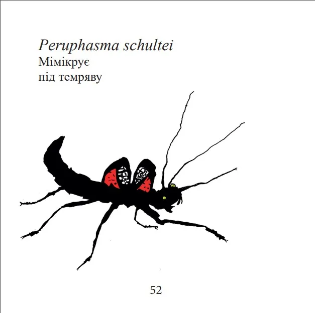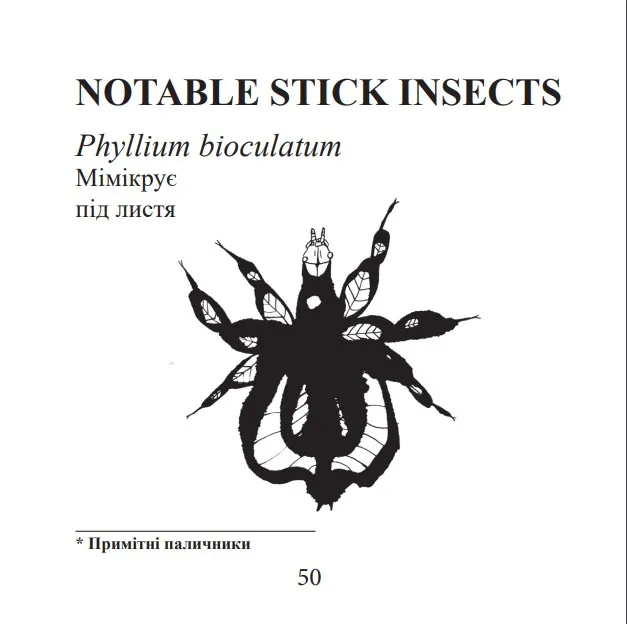 Сама книжка — десь 10х10 сантиметрів, квадратна, 60 сторінок. Вона складається з двох частин: одна — це комікс про мене і паличників, інша — науково-популярна, про те, до якої групи вони належать, де живуть, опис особливостей.