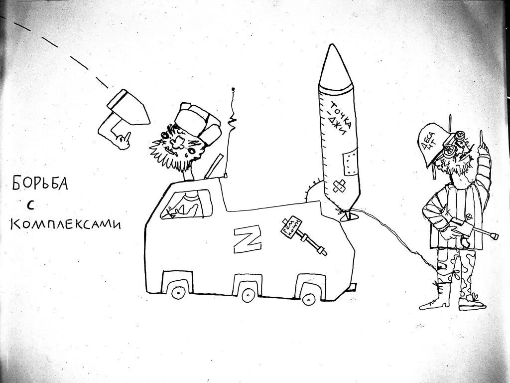 Якщо чесно, часом здається, що я перегнув трошки. Наприклад, нещодавно намалював про Добкіна та Кримський міст. Я це уявляв в стилі «Шаленого Максу»: що він такий їде, бере балончик зі срібною фарбою, пшикає собі до рота, такий: «Зараз улечу в Вальгаллу!».