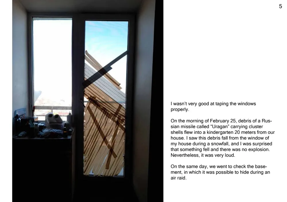 Гадаю, для нас, для внутрішнього споживача, це досить нудна тема: всі вже ніби це пережили: ну да, я сидів у підвалі, ну да, щось малював — це нічого такого. Але це така агітація, і вона спрямована назовні. Тут це може кого-небудь вразити. У нас було багато фотографій з того часу, ми все документували, і я написав текст. Це такий ніби журнал в ретроспективі плюс пояснення того, що я малював. Я це роблю для німців.